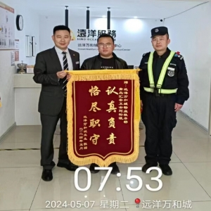 巡逻不仅仅是“打点”5月1日晚21:30分左右,秩序部巡逻员刘松波巡查地下车库时,发现452号车主车窗未关,上前检查发现,车里并无人员且车座上留下了类似贵重物品,该巡逻员立即拨打了车主电话,并在车旁等候,直到车主赶到才离开。几天以后,该业主送来了一面